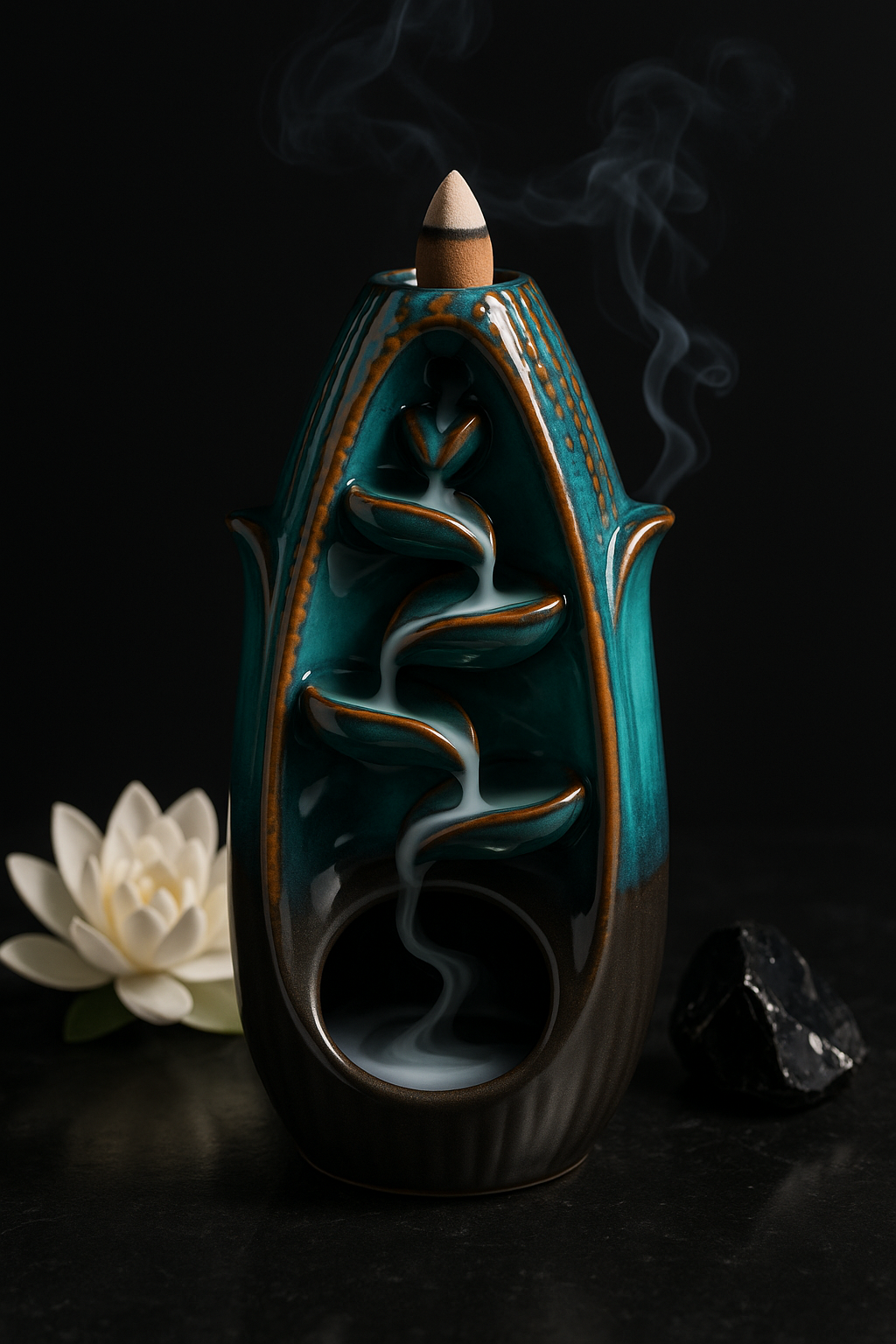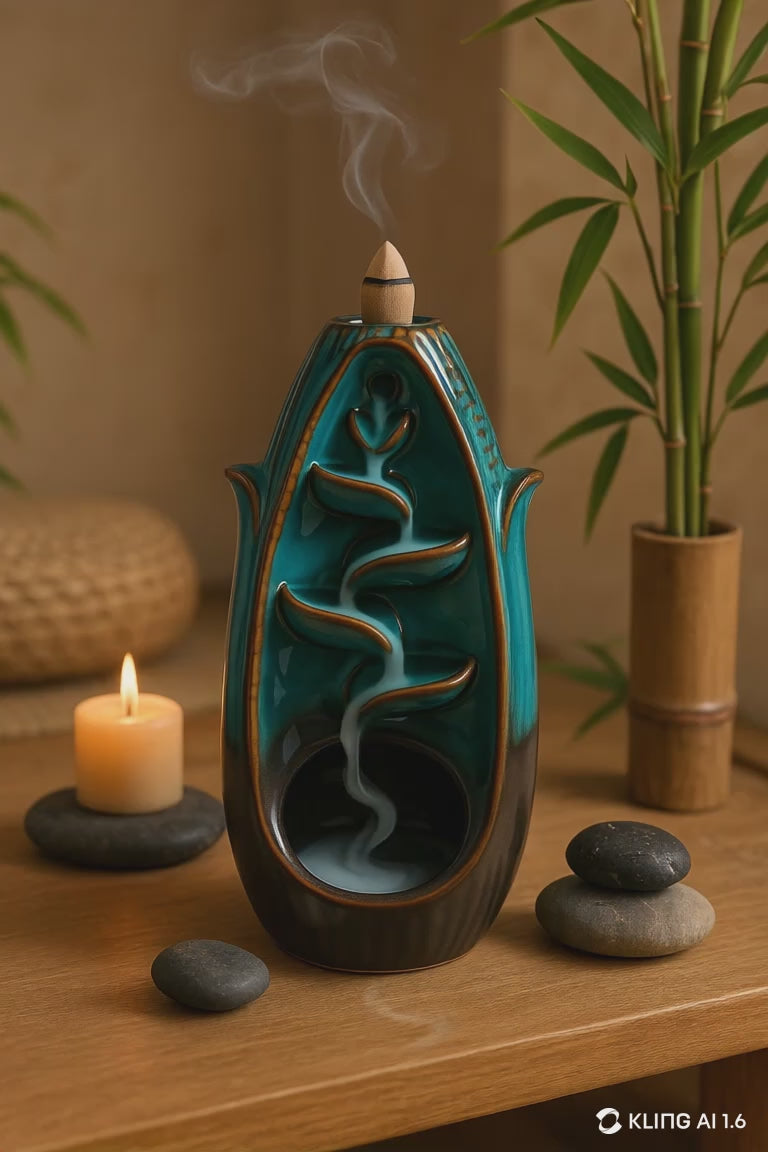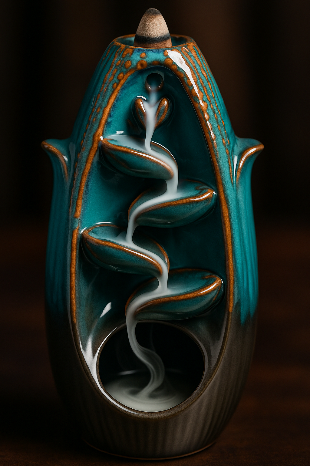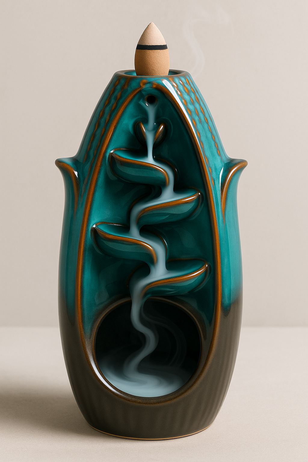 ✨Sumérgete en la serenidad con nuestro quemador de incienso “Cascada Azul”, una pieza de cerámica esmaltada que reproduce el fluir hipnótico de las aguas. El humo desciende como un arroyo etéreo, creando un espectáculo visual que relaja la mente y el alma.